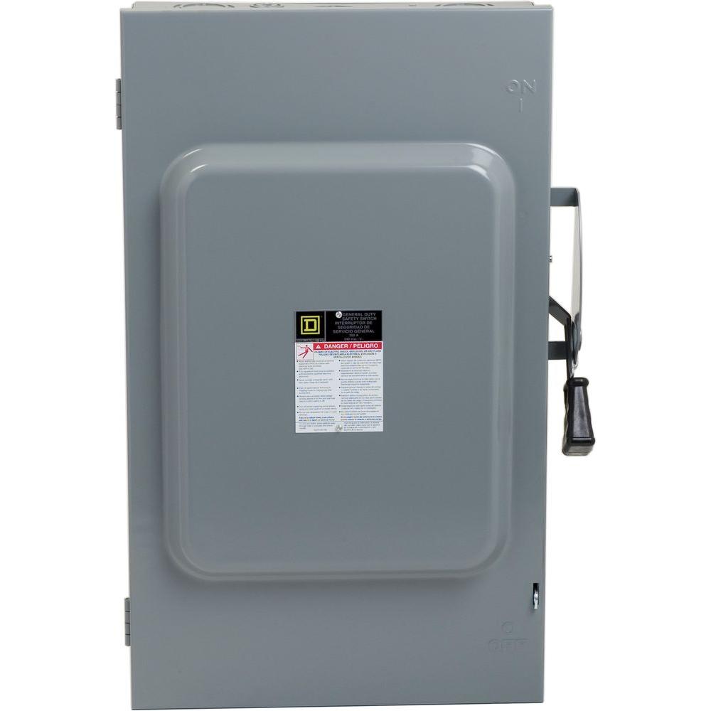 The Square D by Schneider Electric 200 Amp 240 Volt 3 Pole Indoor Fusible General Duty Safety Switch is designed for residential and commercial applications where durability and economy are prime considerations. Typical loads are lighting, air conditioning and appliances. The switch is UL listed, File E2875, and meet or exceed the NEMA standard KS1. For more than 100 years the Square D brand safety switch has been the unchallenged leader in the market. We’ve continued our tradition of innovation, developing new features that provide an unsurpassed level of performance, reliability, safety and ease of installation. This tradition has resulted in the Square D brand being preferred two to one over our closest competitor.