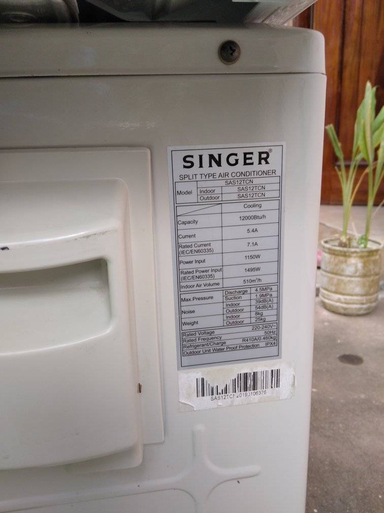 12000BTU AC SINGER , free installation Gampaha area , no warranty , call more details.